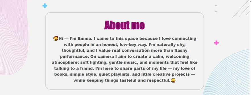 Dirty Talk, Cosplay, Hakken, Roken, Kantoor, Spanking, Erotische dans, Ahegao, Op z'n Hondjes, Voetfetisj, Koken, Pik beoordeling, Footjob, Meesteressen, Rollenspel, Olie show, Cuckolding, Aftrek opdracht, Korset, Massage, Yoga, Leer, Anaal, Topless, Masturberen, Dildo of vibrator, Hardcore, Flashing, Facial, Standje 69, Rokje omhoog, Striptease, Fisten, Vernedering, Seksspeeltjes, Pijpen, Deepthroat